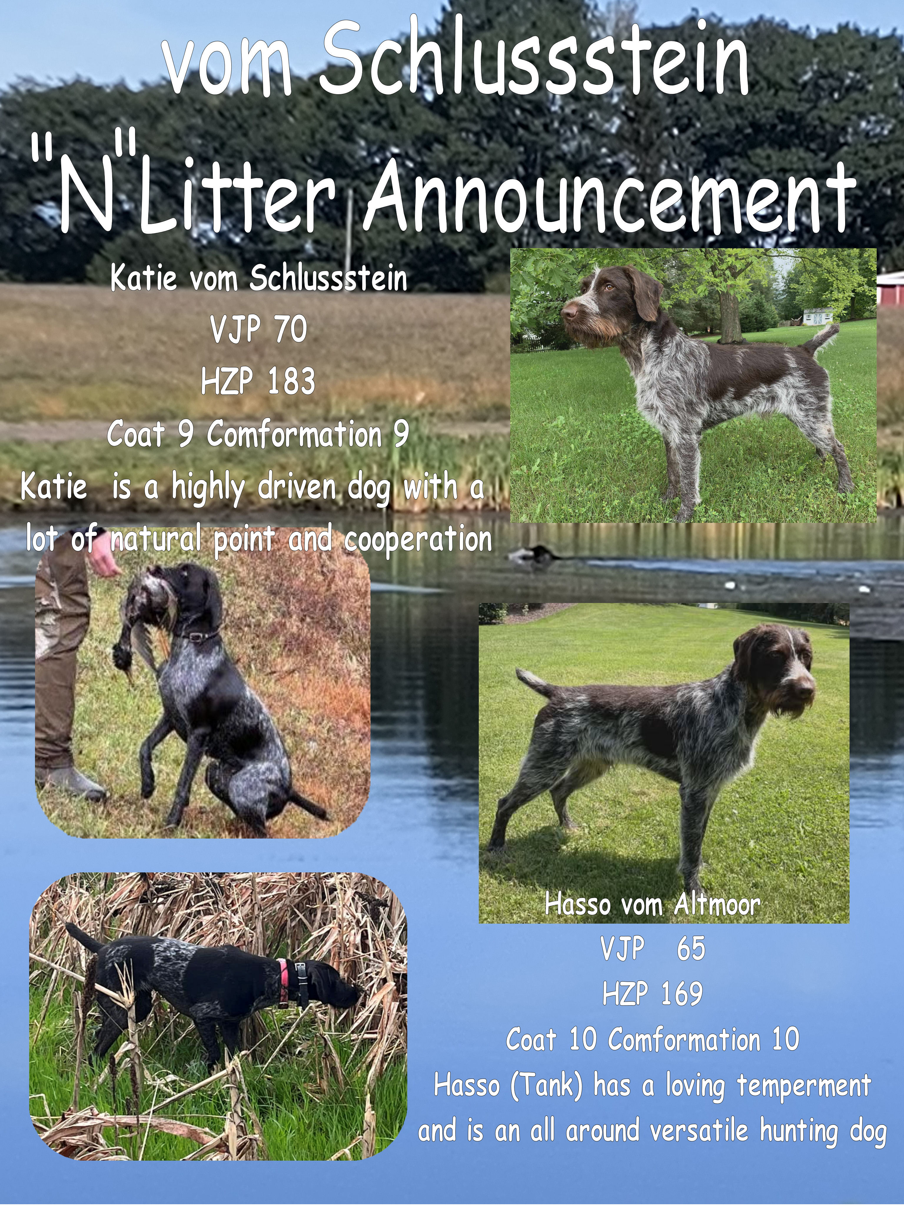 If you would be interested in a puppy from this breeding, I can provide references with those that have puppies from past litters, as well as give you the opportunity to meet the parents and of course go hunting with them.